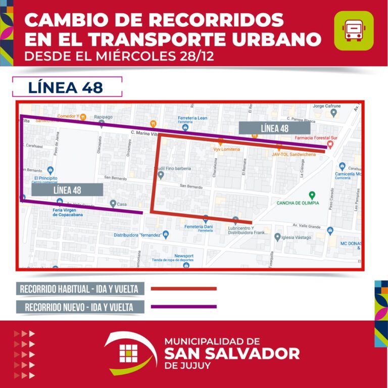 La Secretaria de Servicios Públicos a través de la Dirección General de Tránsito y Transporte, informó a la población en general y a los señores usuarios del transporte de pasajeros en particular, que ha dispuesto que a partir del día miércoles 28 de diciembre de 2022 o modificar el recorrido de las siguiente lineas, según el siguiente detalle:
