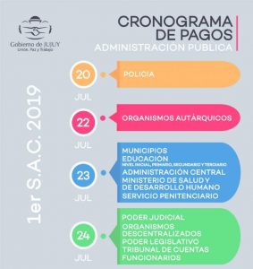 El sábado comienza el cronograma del aguinaldo 15 julio, 2019 Facebook Twitter WhatsAppTesorería de la Provincia confirmó que desde el sábado comenzará a pagar la primera cuota del Sueldo Anual Complementario El cronograma es el siguiente: Facebook Twitter WhatsApp