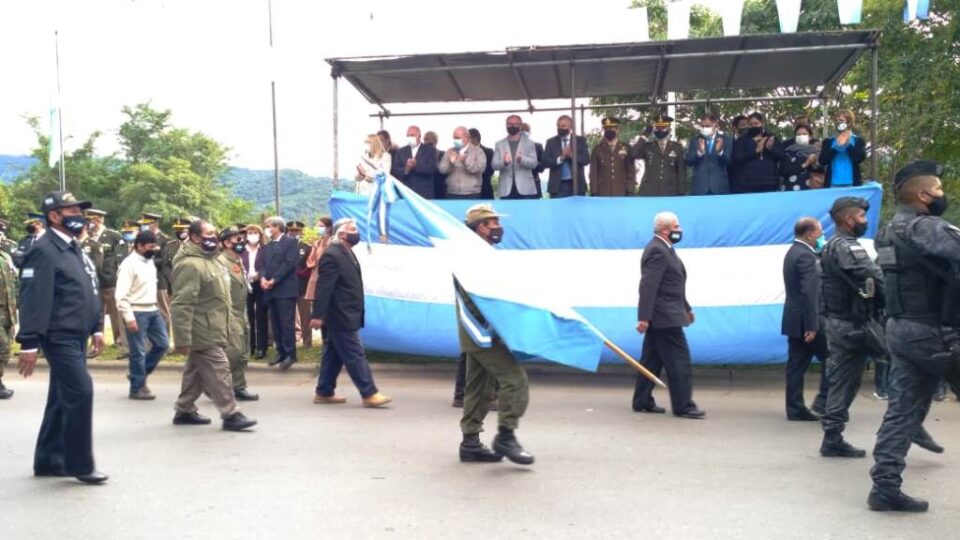 El gobernador Gerardo Morales y el intendente Raúl Jorge, encabezaron el acto central que constó de los saludos protocolares, ofrendas florales, y la bendición apostólica por el Obispo Monseñor Daniel Fernández. Además se pronunciaron discursos alusivos recordando los sucesos acontecidos hace 39 años e instando al recuerdo y homenajes permanentes a los héroes, tanto de los que quedaron en las Islas como de los que aún viven entre nosotros.