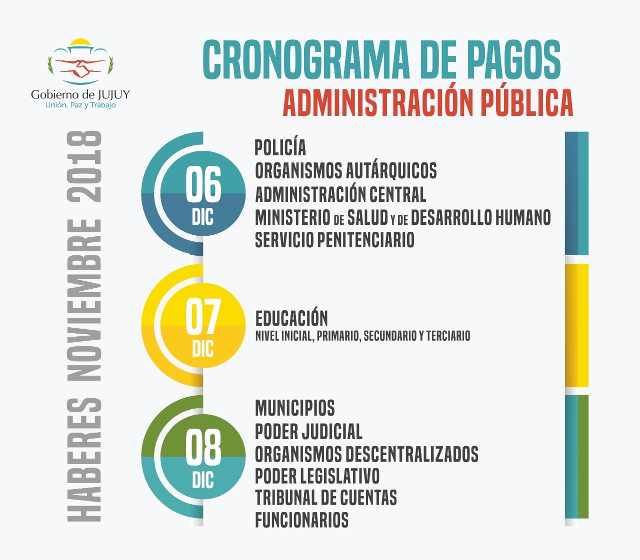 Tesorería de la provincia anunció el cronograma de pago de salarios correspondiente al mes de noviembre que da inicio hoy y se extenderá hasta el sábado 8.