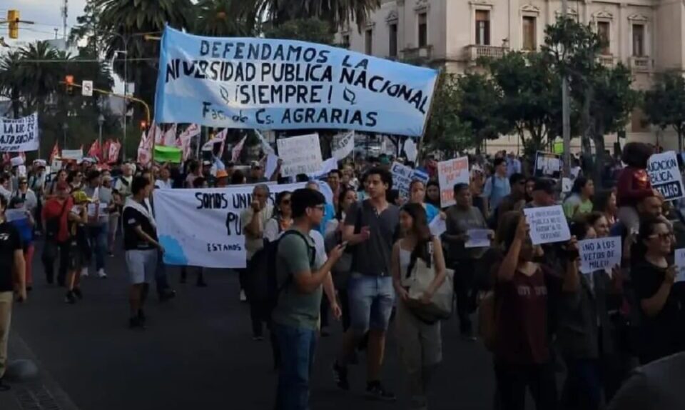 La movilización reunió a docentes, estudiantes y trabajadores universitarios que marcharon desde la Facultad de Ciencias Agrarias, exigiendo que se revoque el veto para garantizar un presupuesto adecuado para la universidad pública.