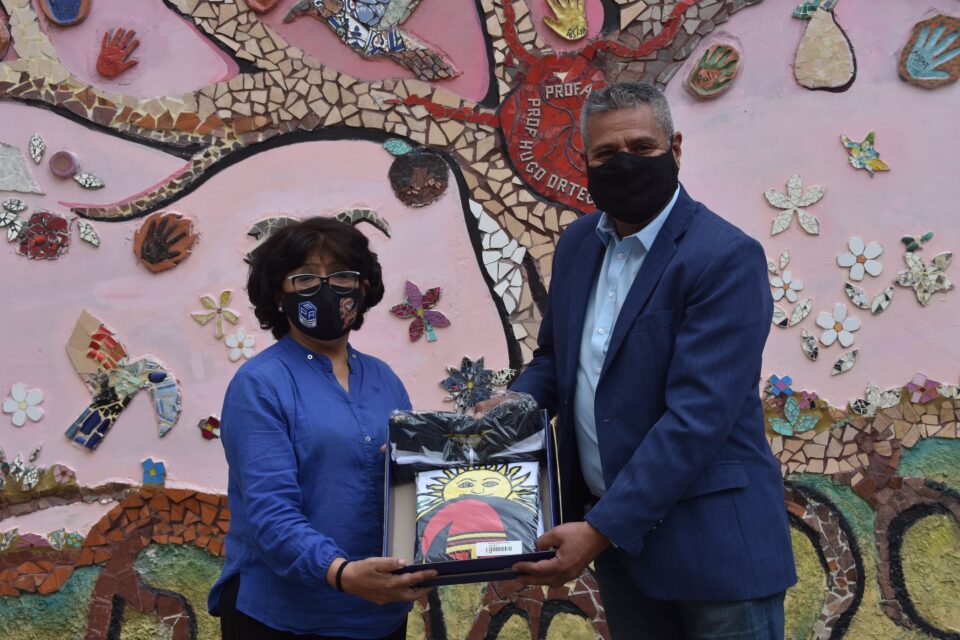 En un sencillo acto en el patio de la Escuela Provincial de Artes N° 1 “Medardo Pantoja”, el diputado provincial Gaspar Santillán hizo entrega de una Bandera Nacional de la Libertad Civil de ceremonia, a la directora de la institución, Hortensia Valerio y a la docente Lorena Martínez Brajer.