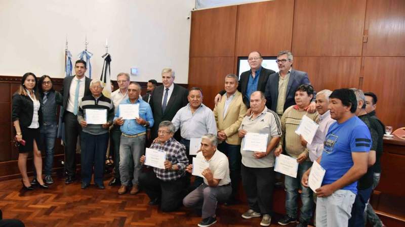 En el marco del día del trabajador rural, el vicegobernador y presidente de la Cámara, Carlos Haquim – acompañado por los diputados Carlos Amaya, Gaspar Santillán y Fabián Tejerina – hizo entrega de certificados de reconocimiento por la labor desempeñada a trabajadores de El Carmen, Perico, Palpalá, Monterrico y San Pedro. “Es la primera vez en la historia que los trabajadores rurales pisamos la Legislatura para este tipo de reconocimientos. Aquí estamos orgullosos y damos las gracias por invitarnos y reconocer a nuestra gente”, señaló Alfredo Yusgra, delegado provincial de UATRE.
